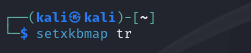 “setxkbmap tr” komutu ile türkçe klavyeye geçelim;